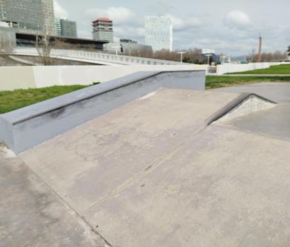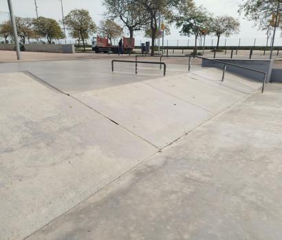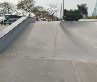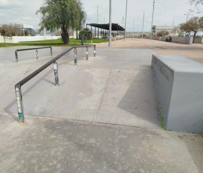 Este skatepark es relativamente pequeño, de cemento, y mixto, donde podemos patinar rampa y street.