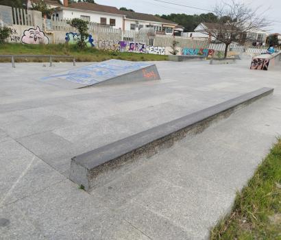 Tiene rampitas y planos inclinados de tamaño pequeño, barandilla de hierro redonda, cajones y un slappy que desliza mucho.