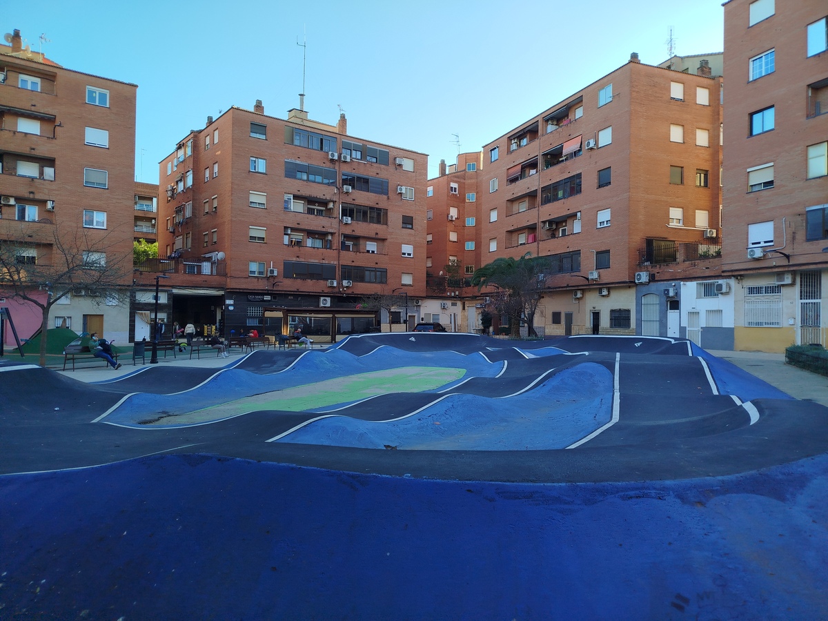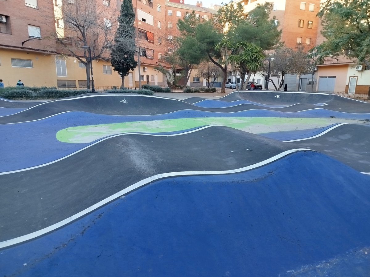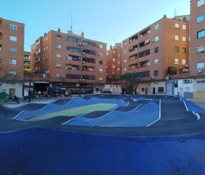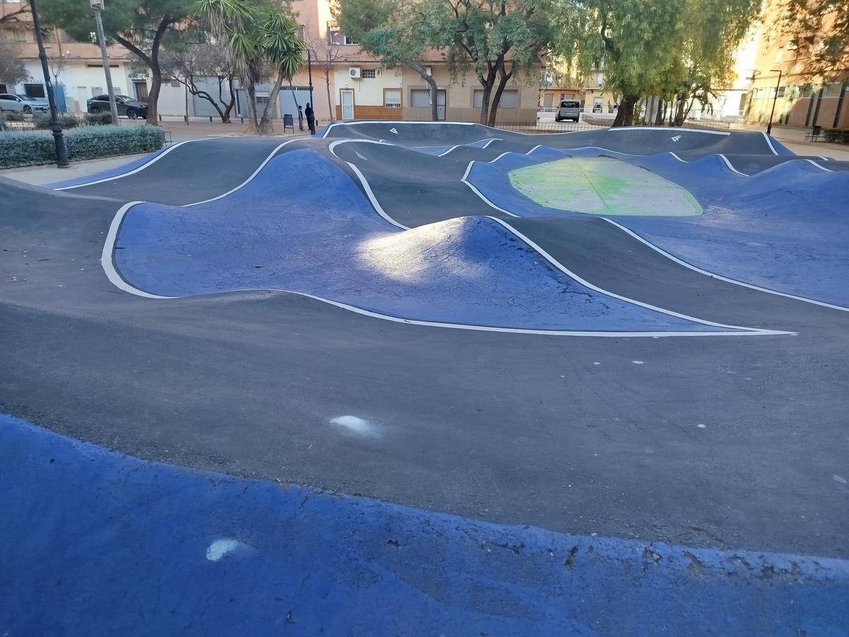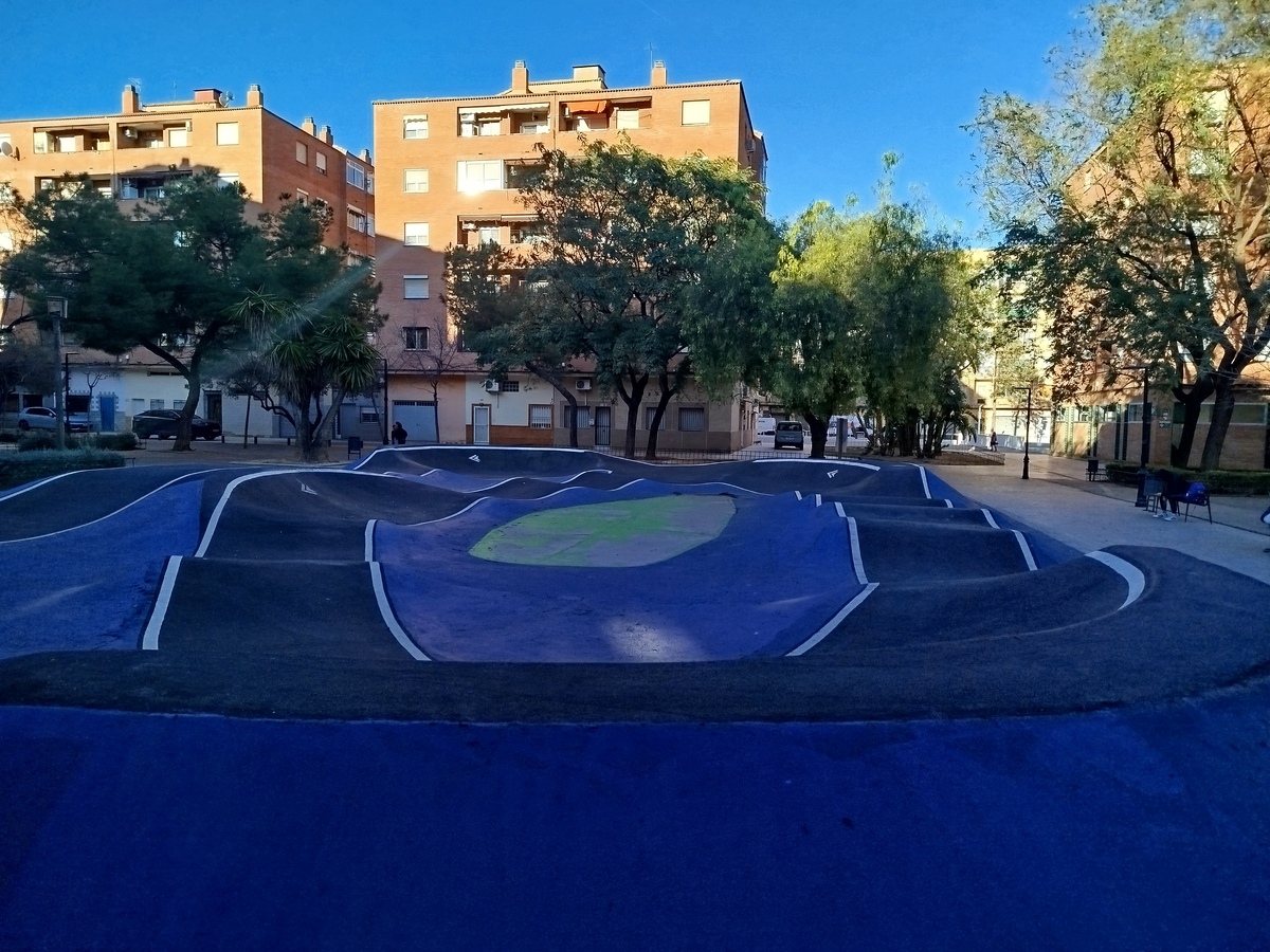 Os presentamos el pumptrack de Aldaia, situado en la Plaza de la Cultura, en un entorno rodeado por edificios haciendo de este pumptrack un parque realmente especial.