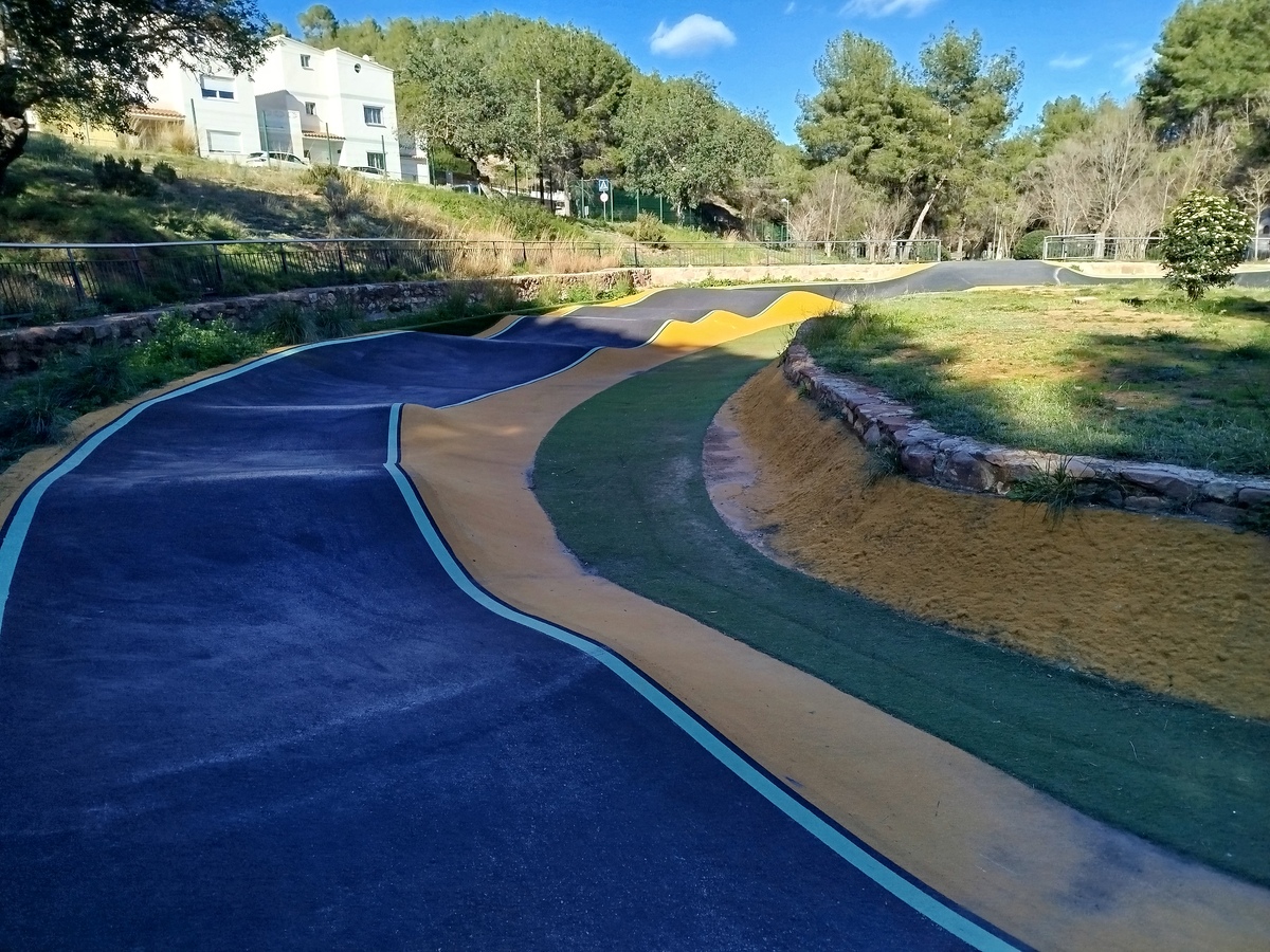 Os presentamos el pumptrack de Gilet, en una zona verde muy bonita y agradable, con lugar para descansar, mesas de picnic de madera y mucha sombra.