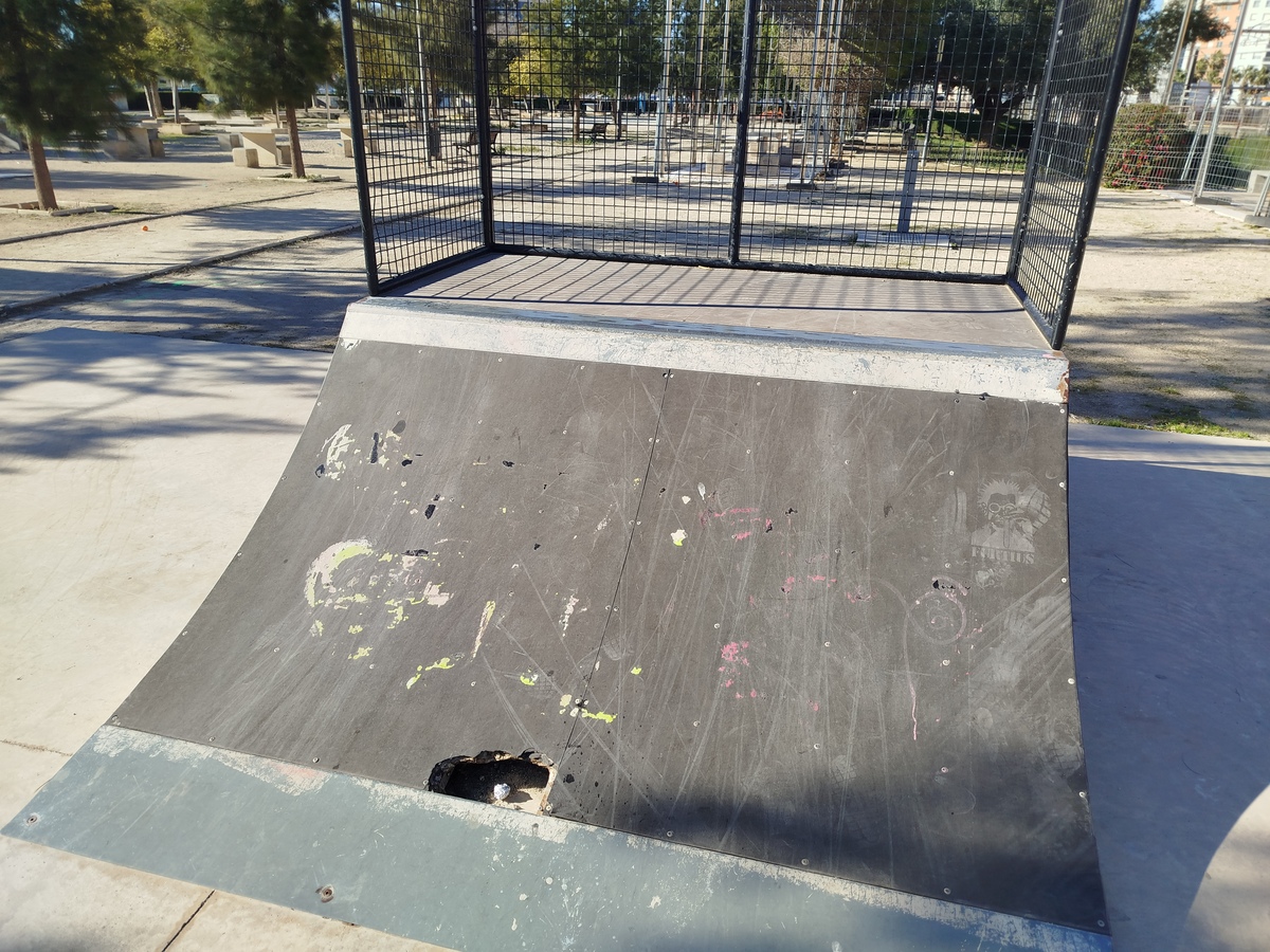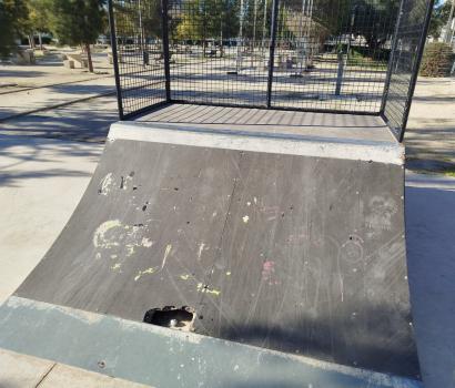El skatepark es muy pequeño y no está todo perfecto, el quarter pipe tiene un agujero considerable. El problema aquí NO lo tienen los políticos, NO lo tiene el Fascismo Internacional y NO lo tienen los extraterrestres que nos quieren destruir, el único problema y responsabilidad son los skaters locales que han permitido esta situación y no han reivindicado y defendido el skatepark. Hoy en día, en pleno año 2026, es super fácil entrar en la Sede Electrónica del ayuntamiento y realizar una queja desde casa. Si eso lo hicieran dos o tres skaters locales, e incluso si solicitaran una reunión con el concejal de Deportes o de Juventud, le mostrarían los problemas de las instalaciones y la situación cambiaría, pero parece ser que los skaters locales prefieren no hacer nada y abandonar el skatear. Muy mal.